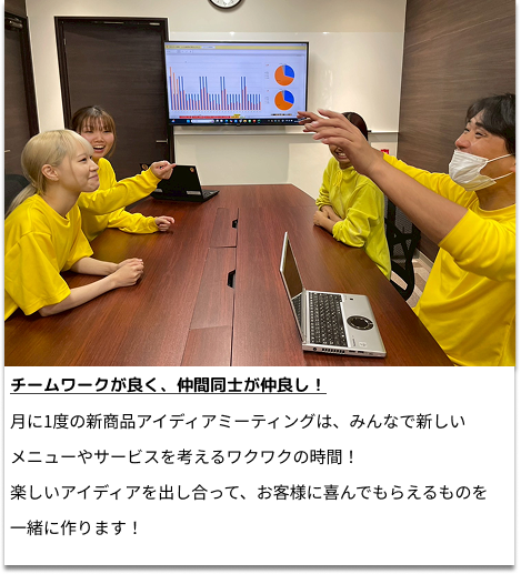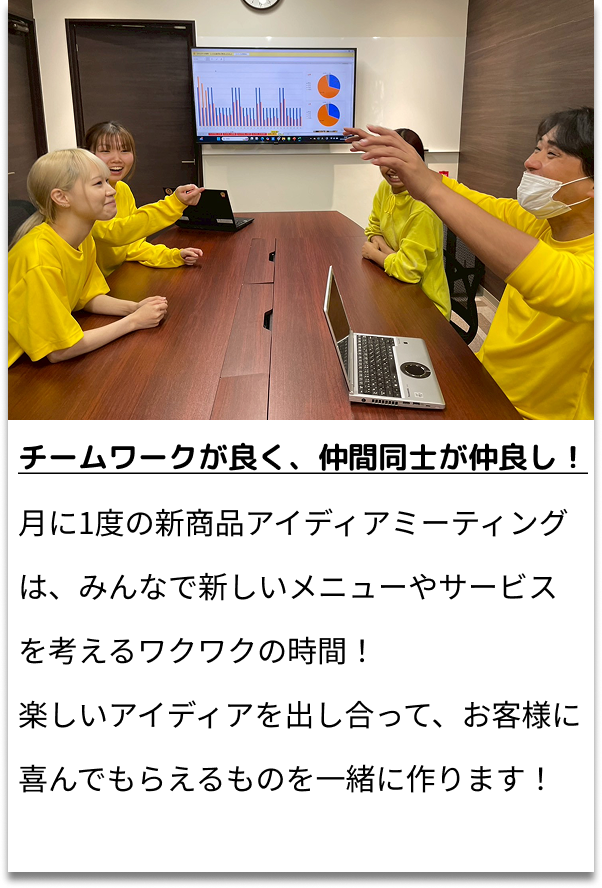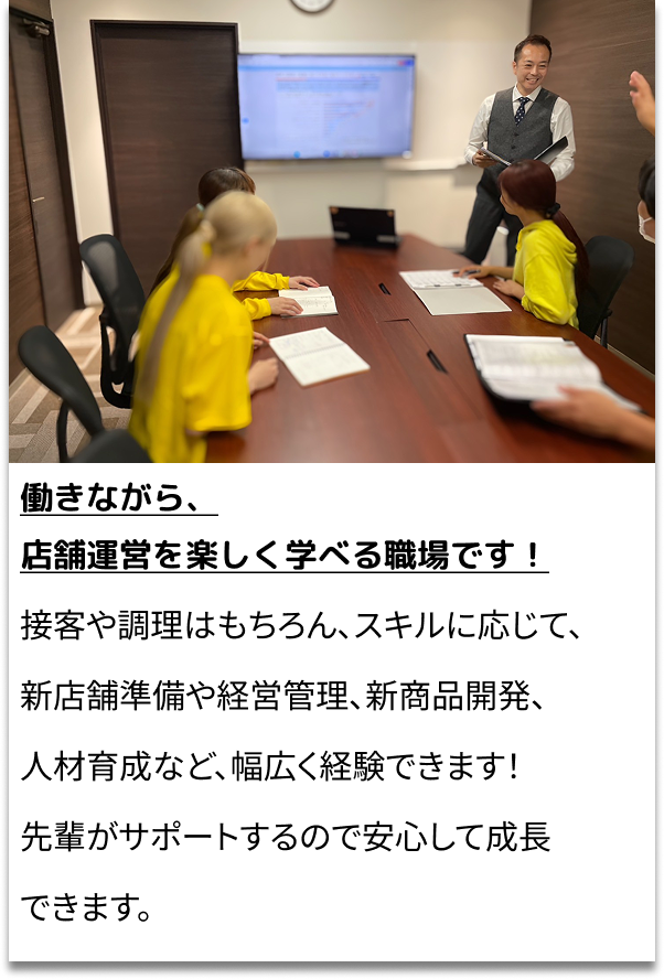 お客様が笑顔で『また来たい』と思えるお店作りにチャレンジしませんか? “働く楽しみ” を大切にしながら、仲間と共に成長できる職場です! CONTACT 詳しくはこちら CONTACT 詳しくはこちら 高校生向け採用サイト TOP 先輩社員メッセージ 仕事内容・社員の一日 保護者の方へ お問い合わせ プライバシーポリシー TOP 先輩社員メッセージ 仕事内容・社員の一日 保護者の方へ お問い合わせ プライバシーポリシー 高校生向け採用サイト